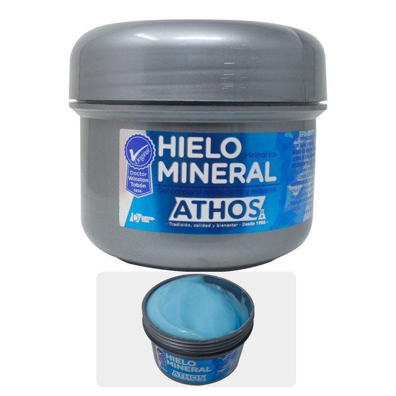 Disponibles en distintos tamaños; el producto Hielo Mineral Athos en Gel está hecho para refrescar y ayudarte a relajar las zonas requeridas; siendo sus ingredientes principales el agua, el alcohol, el mentol, la glicerina y alcanfor. Es una alternativa para fisioterapeutas, que lo recomiendan para fines distintos como el calentamiento muscular; antes de la actividad física y para estimular la circulación de la sangre.